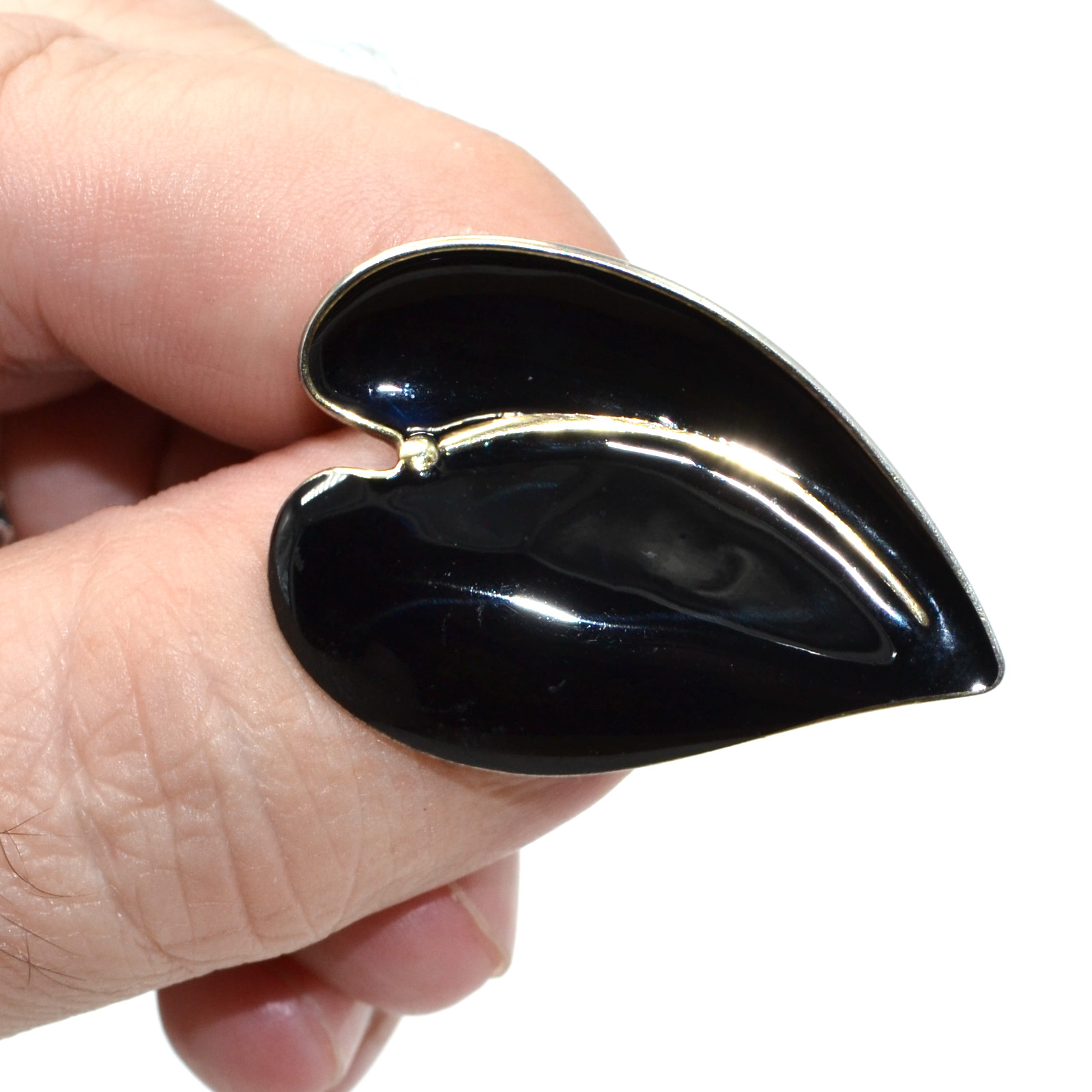 The Norwegian Black Enamel Leaf Pin is a beautiful, early 20th century brooch of black enamel over gilded sterling silver. The Norwegian and Danish modern silversmiths of the early 1900s created some of the most prized sterling silver jewelry of the era. Collectors seek them out for the colors and patterns created by the different enamels and modernist settings. The piece is hallmarked Norway and Sterling Silver with the maker’s mark of Einar Modahl of Oslo. The pin measures 1.75 inches across. A truly unique treasure and an excellent example of Scandinavian design.